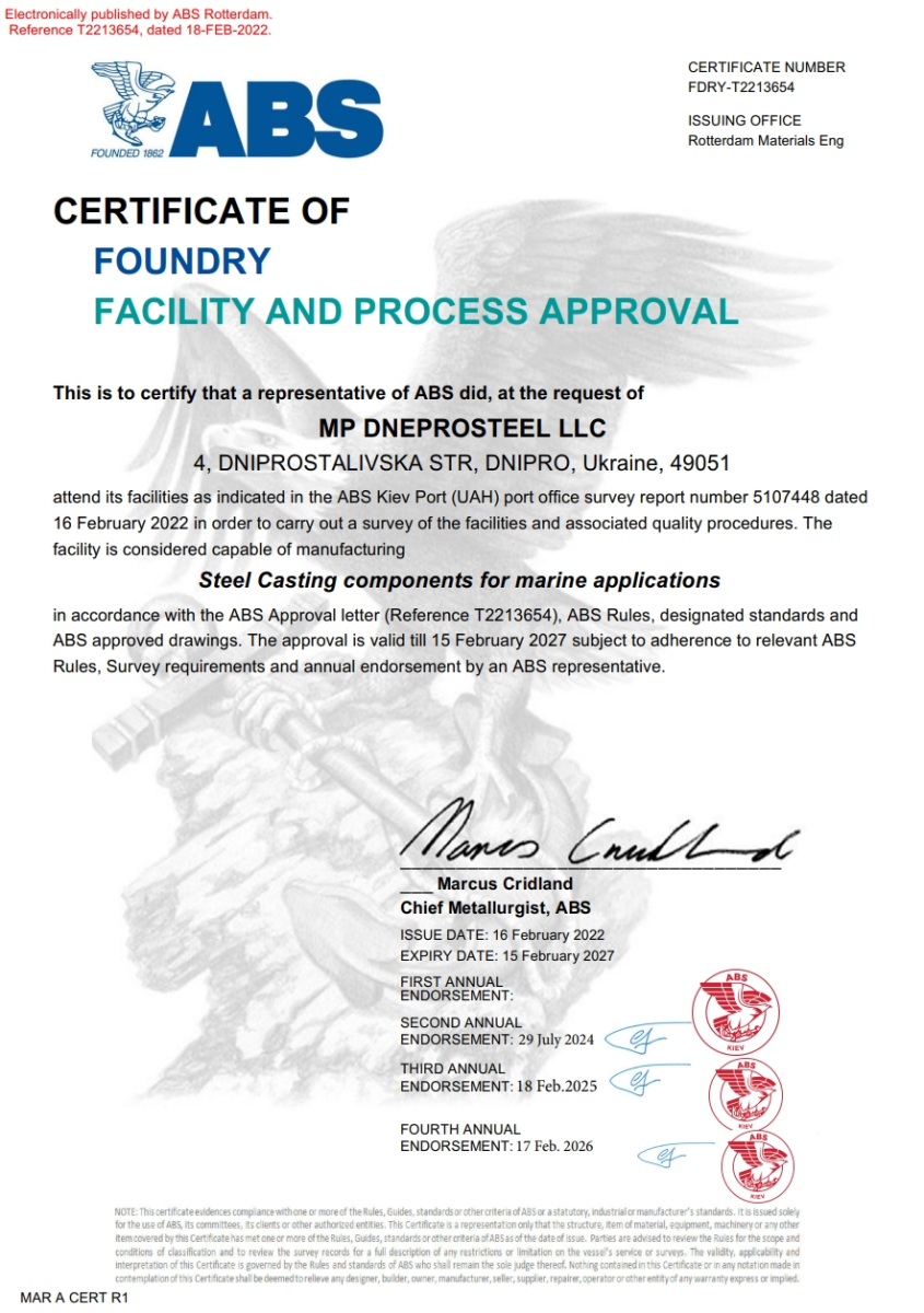 Сертифікат схвалення ABS (American Bureau of Shipping)