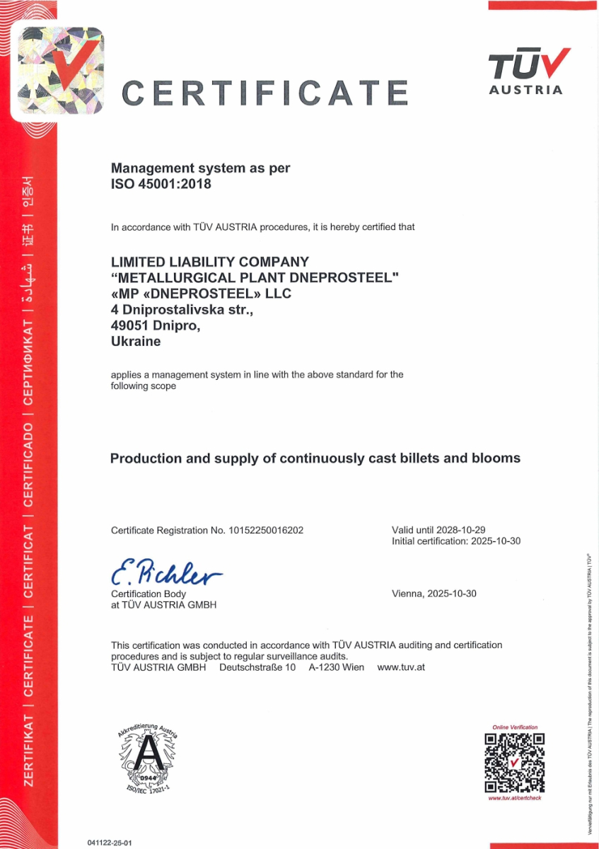 Certificate for Energy Management System in accordance with EN ISO 50001:2018